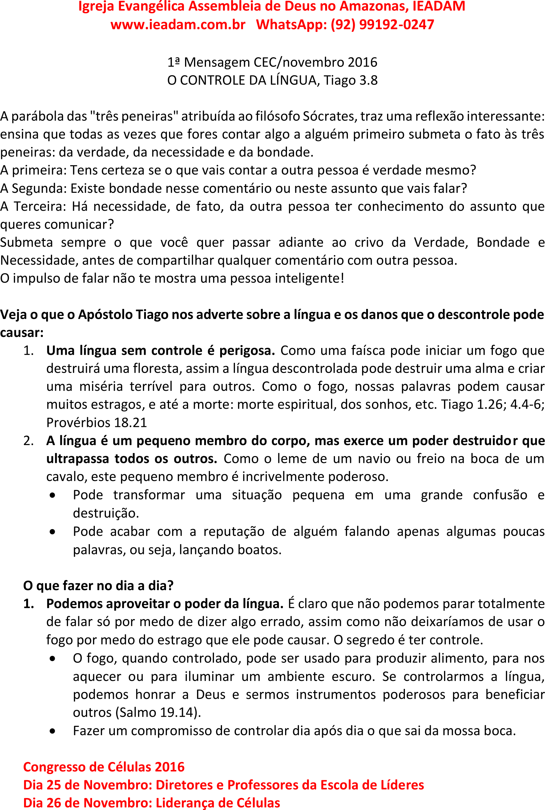 - Fazer um compromisso de controlar dia após dia o que sai da mossa boca.