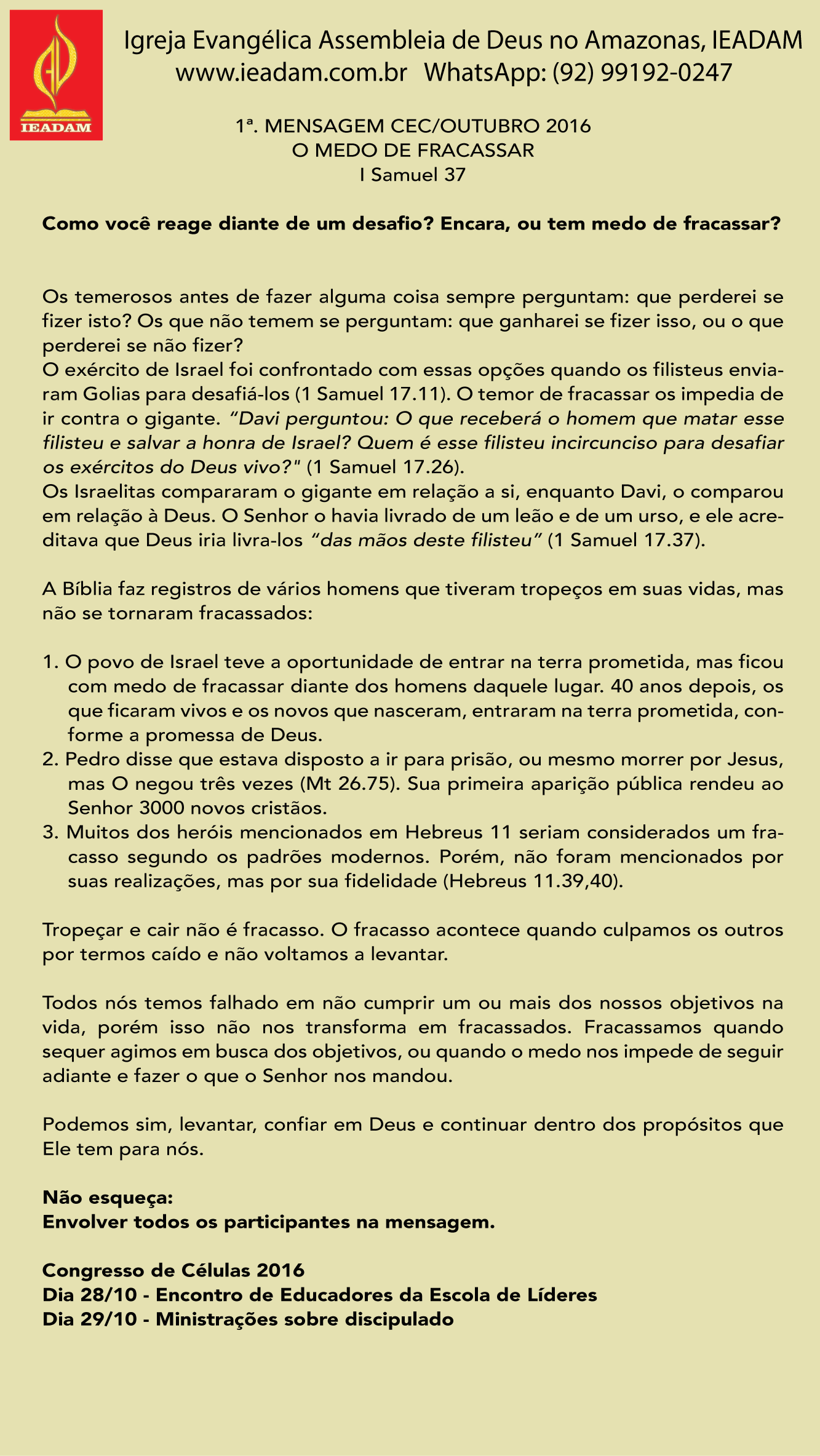 A paz do SENHOR jESUS, desculpe não e’ Minha intenção ousar corrigir um texto tão bem elaborado, 1samuel 37 não existe mas o assunto em questão está em 1 Samuel 17, se minha observação estiver incorreta humildemente peço desculpas…