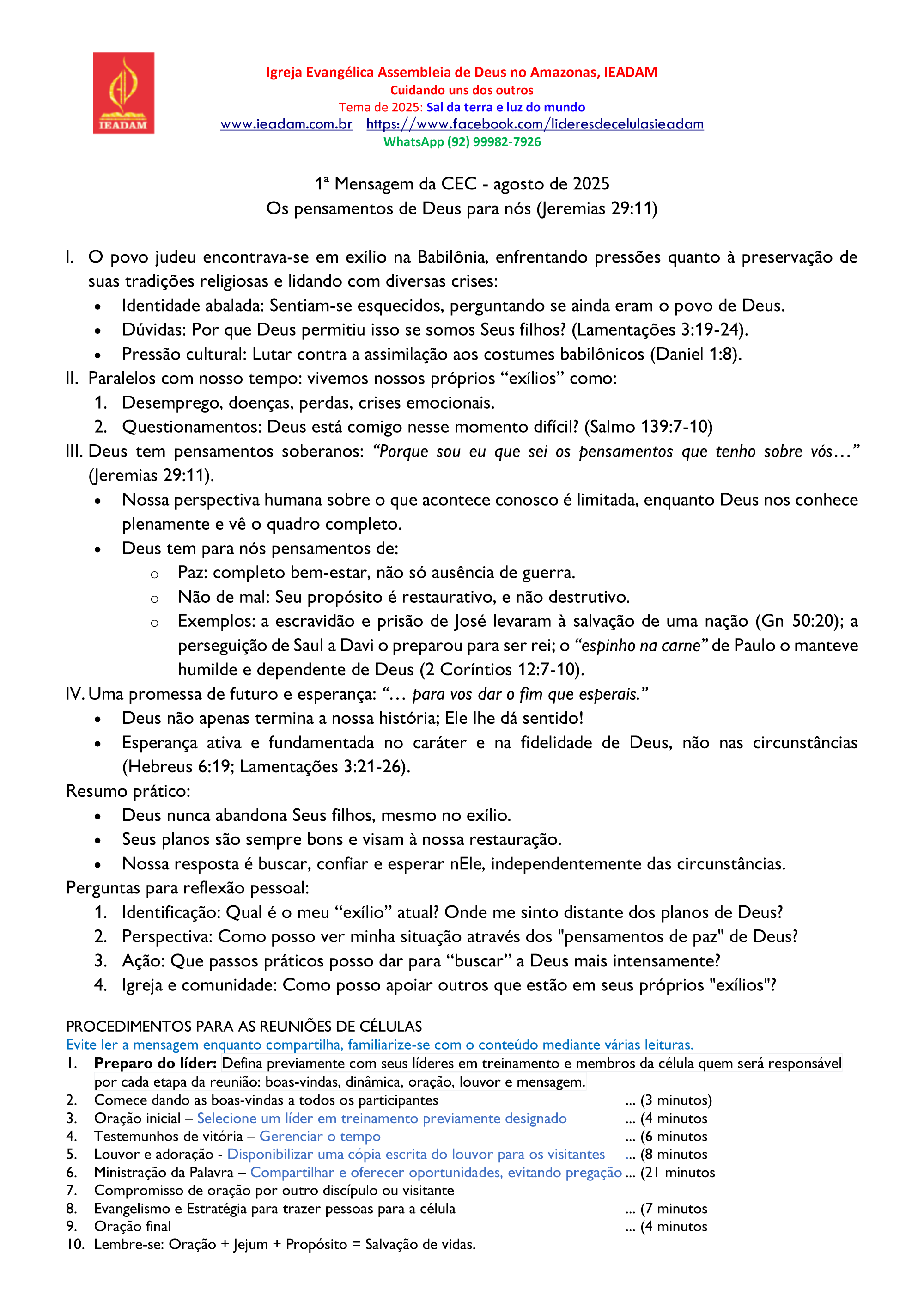 - Lembre-se: Oração + Jejum + Propósito = Salvação de vidas.