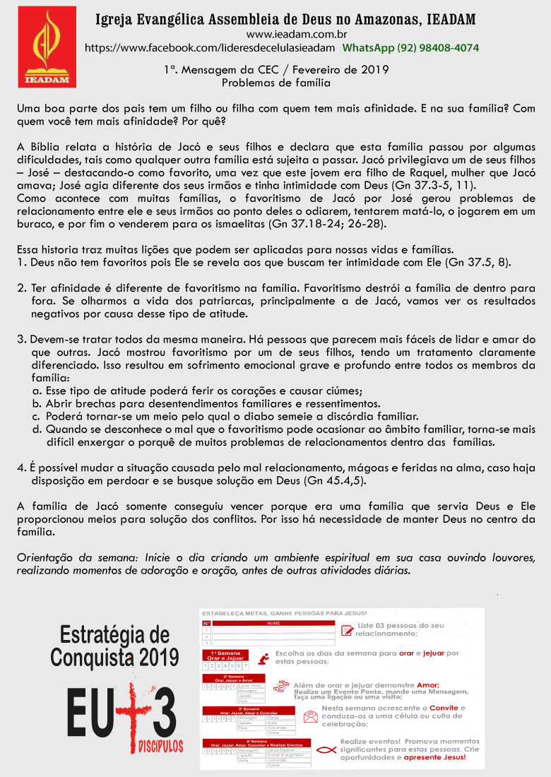 2. Ter afinidade é diferente de favoritismo na família. Favoritismo destrói a família de dentro para fora. Se olharmos a vida dos patriarcas, principalmente a de Jacó, vamos ver os resultados negativos por causa desse tipo de atitude.