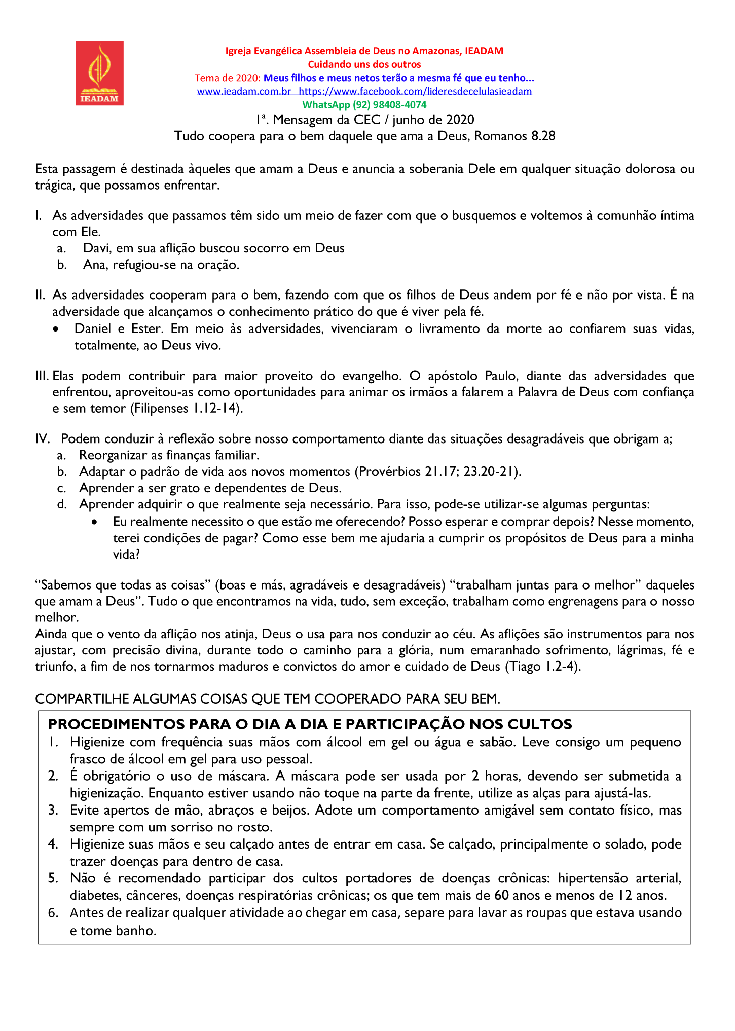 II. As adversidades cooperam para o bem, fazendo com que os filhos de Deus andem por fé e não por vista. É na adversidade que alcançamos o conhecimento prático do que é viver pela fé.