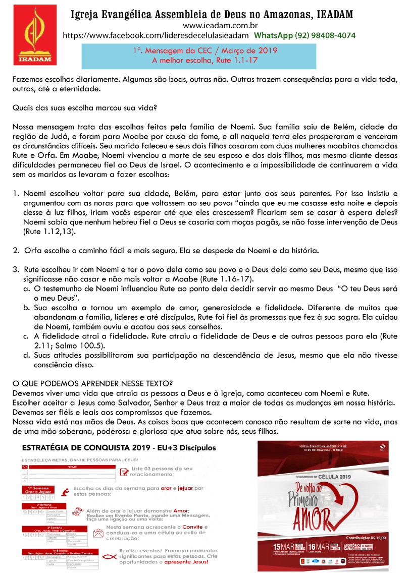 1ª. Mensagem da CEC / Março de 2019 A melhor escolha, Rute 1.1-17