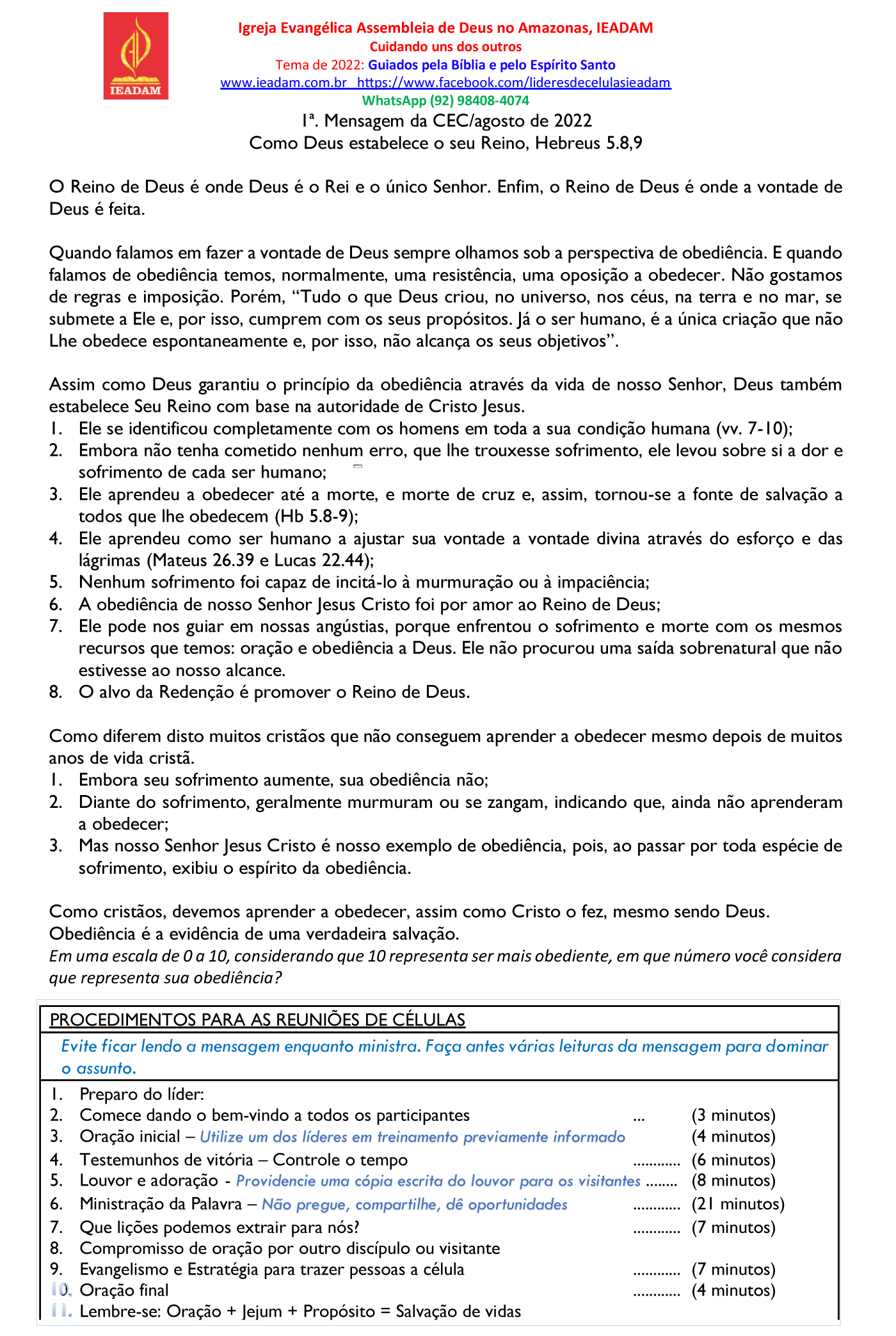 3. Ele aprendeu a obedecer até a morte, e morte de cruz e, assim, tornou-se a fonte de salvação a todos que lhe obedecem (Hb 5.8-9);