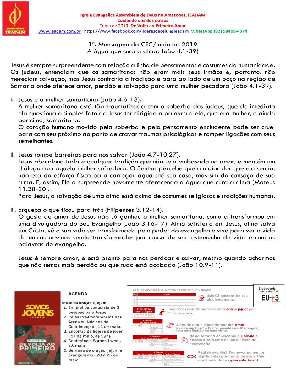 O gesto de amor de Jesus não só ganhou a mulher samaritana, como a transformou em uma divulgadora do Seu Evangelho (João 3.16-17). Alma satisfeita em Jesus, alma salva em Cristo, vê a sua vida ser transformada pelo poder do evangelho e vive para ver a vida de outras pessoas sendo transformadas por causa do seu testemunho de vida e com as palavras do evangelho.