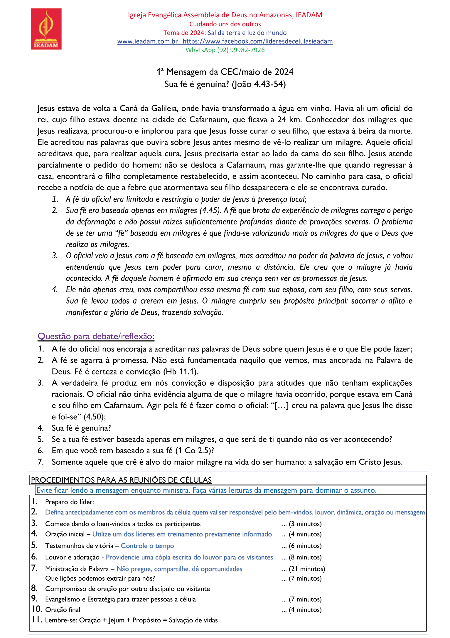 4. Ele não apenas creu, mas compartilhou essa mesma fé com sua esposa, com seu filho, com seus servos. Sua fé levou todos a crerem em Jesus. O milagre cumpriu seu propósito principal: socorrer o aflito e manifestar a glória de Deus, trazendo salvação.