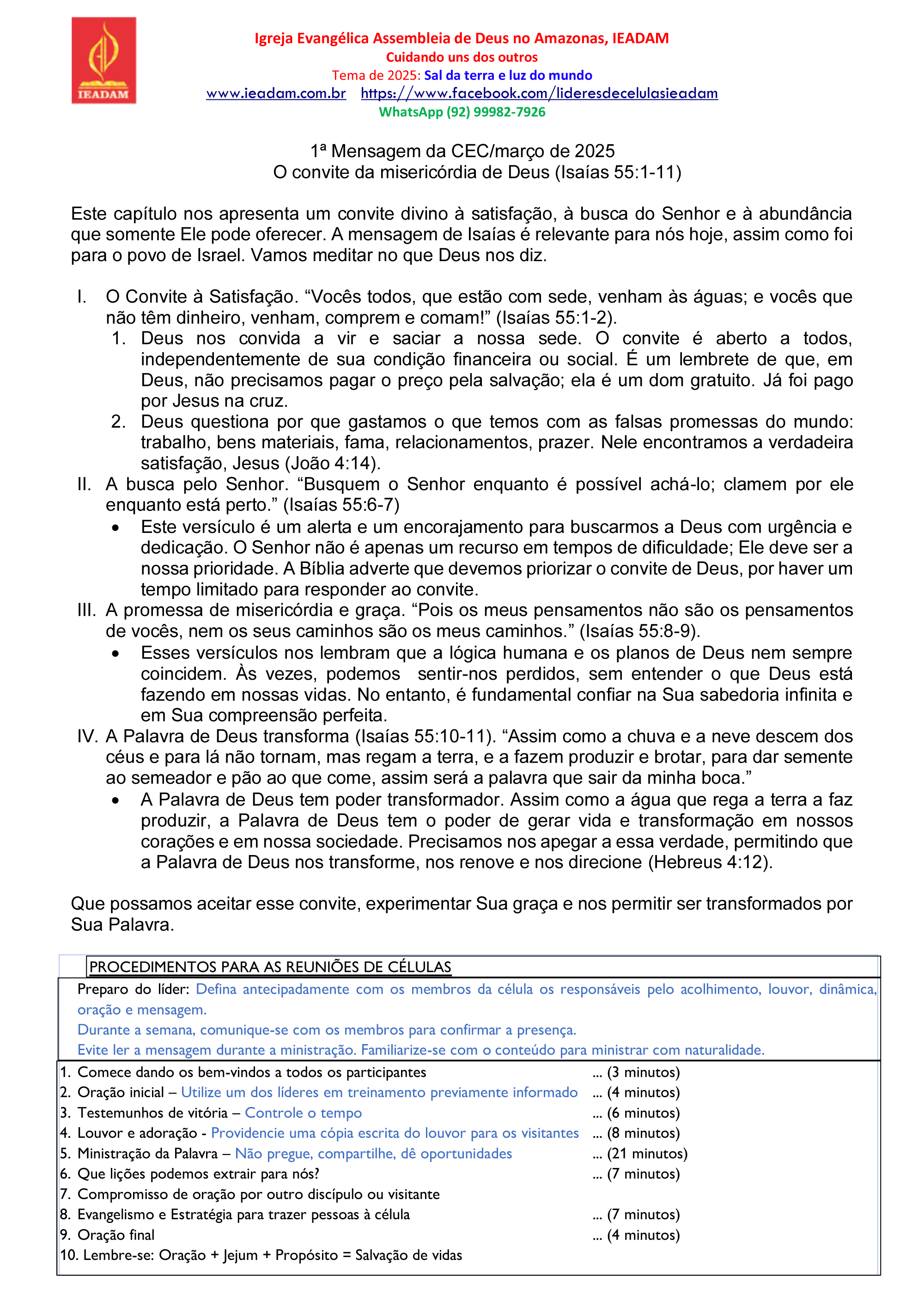 Que possamos aceitar esse convite, experimentar Sua graça e nos permitir ser transformados por Sua Palavra.
