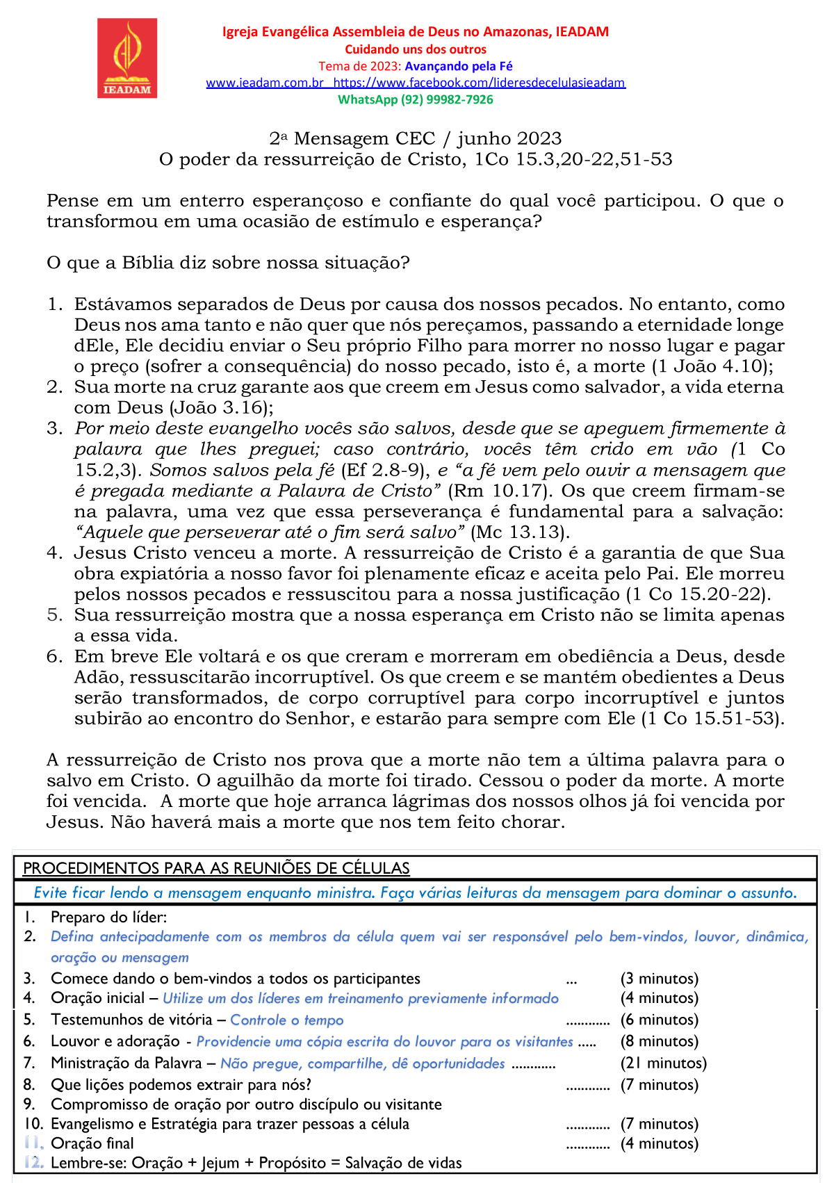 3. Por meio deste evangelho vocês são salvos, desde que se apeguem firmemente à palavra que lhes preguei; caso contrário, vocês têm crido em vão (1 Co 15.2,3). Somos salvos pela fé (Ef 2.8-9), e “a fé vem pelo ouvir a mensagem que é pregada mediante a Palavra de Cristo” (Rm 10.17). Os que creem firmam-se na palavra, uma vez que essa perseverança é fundamental para a salvação: “Aquele que perseverar até o fim será salvo” (Mc 13.13).