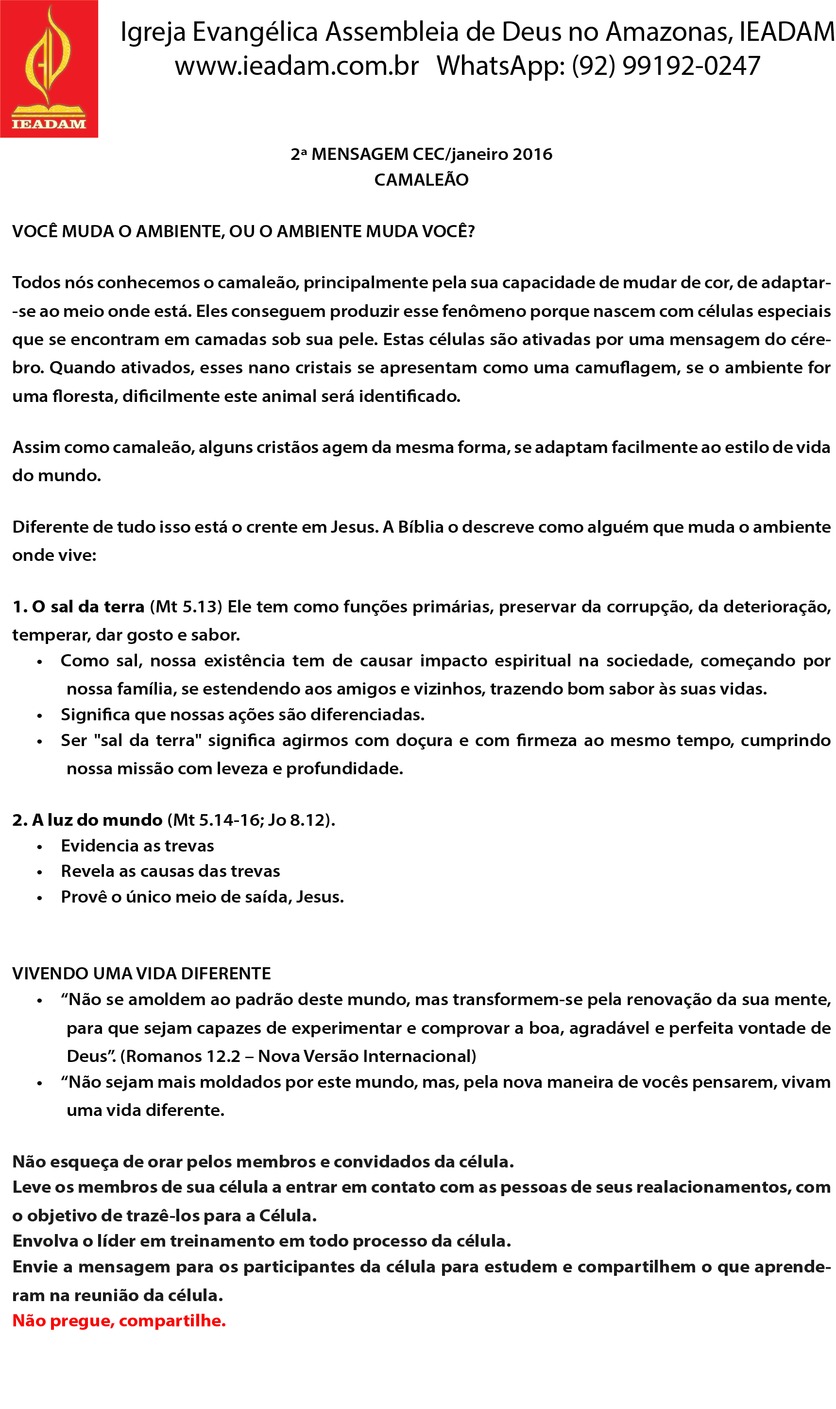 2ª MENSAGEM CEC/JANEIRO 2016 CAMALEÃO