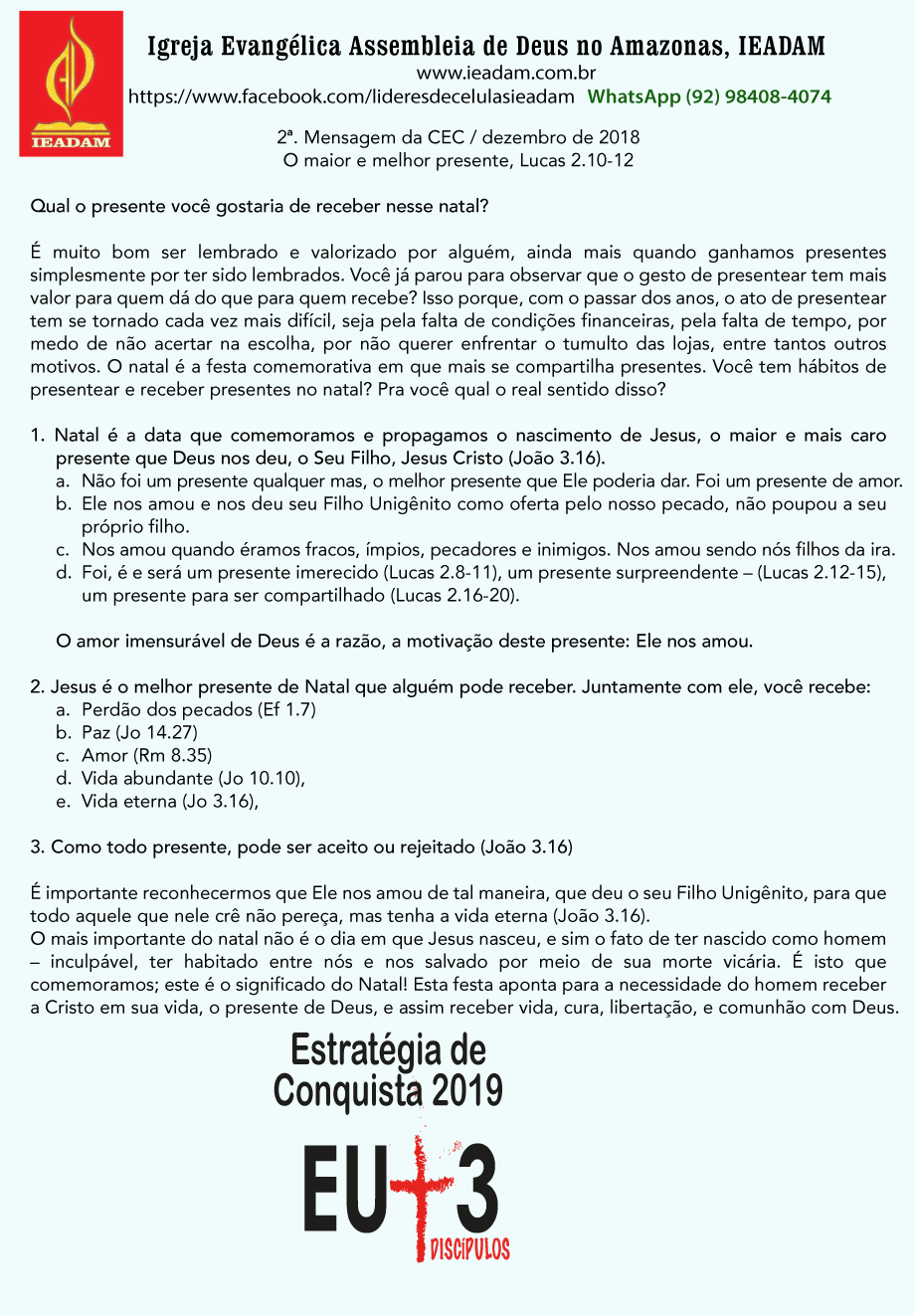 - Natal é a data que comemoramos e propagamos o nascimento de Jesus, o maior e mais caro presente que Deus nos deu, o Seu Filho, Jesus Cristo (João 3.16).