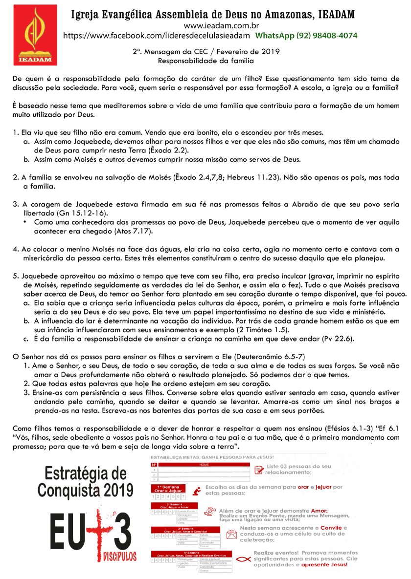 - A família se envolveu na salvação de Moisés (Êxodo 2.4,7,8; Hebreus 11.23). Não são apenas os pais, mas toda a família.