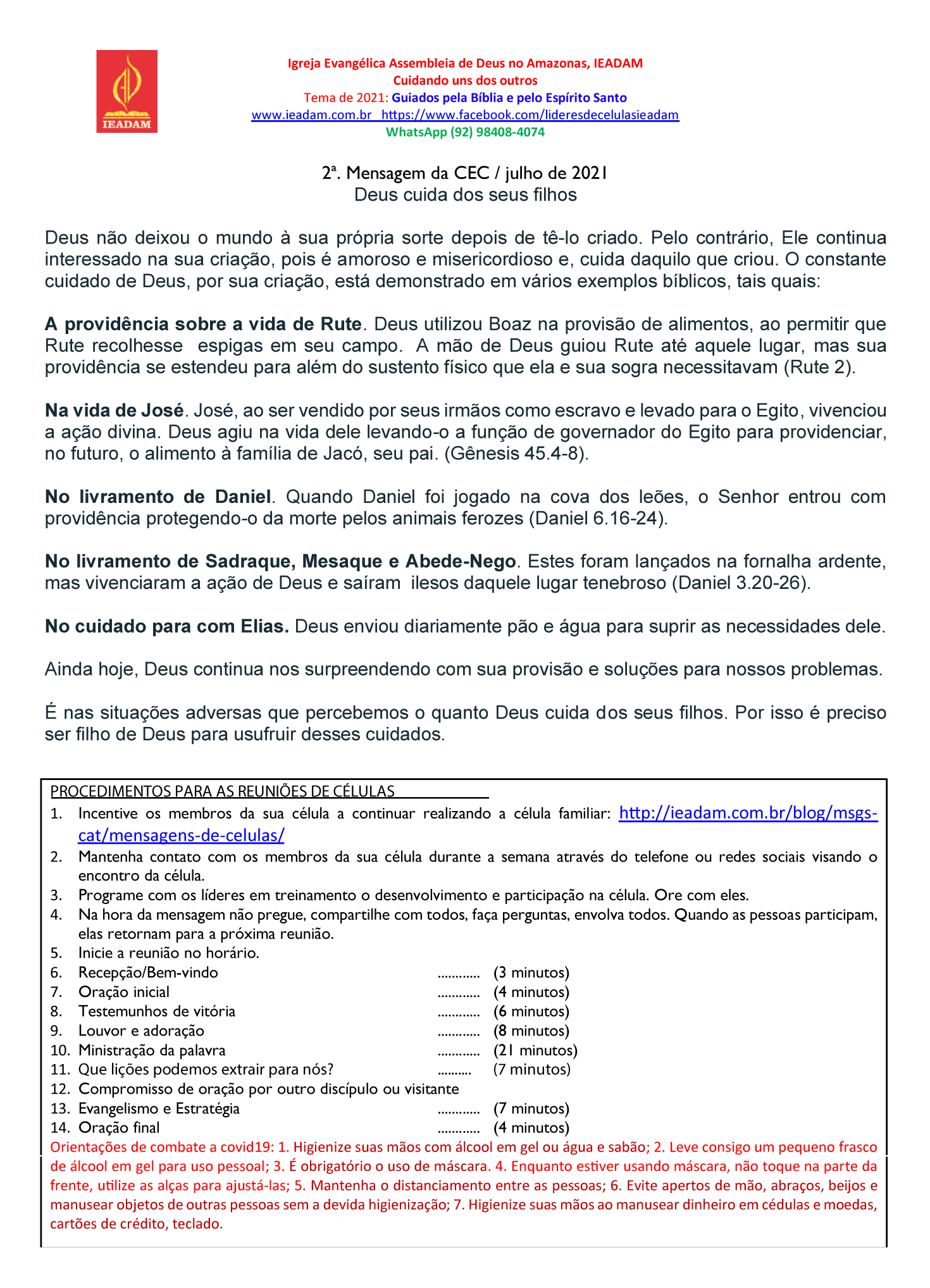 1. Incentive os membros da sua célula a continuar realizando a célula familiar: http://ieadam.com.br/blog/msgs-cat/mensagens-de-celulas/