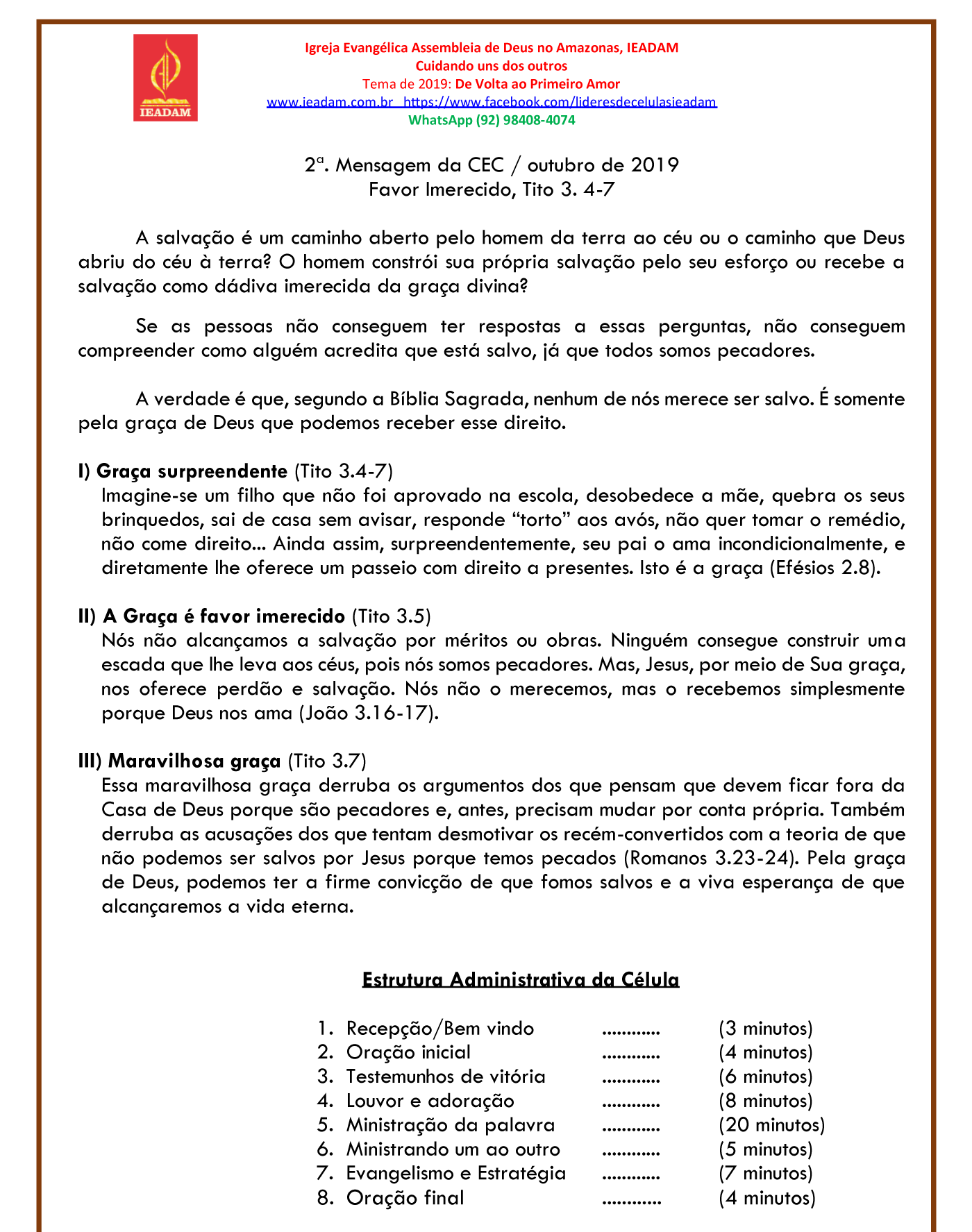 8. Oração final ………… (4 minutos)