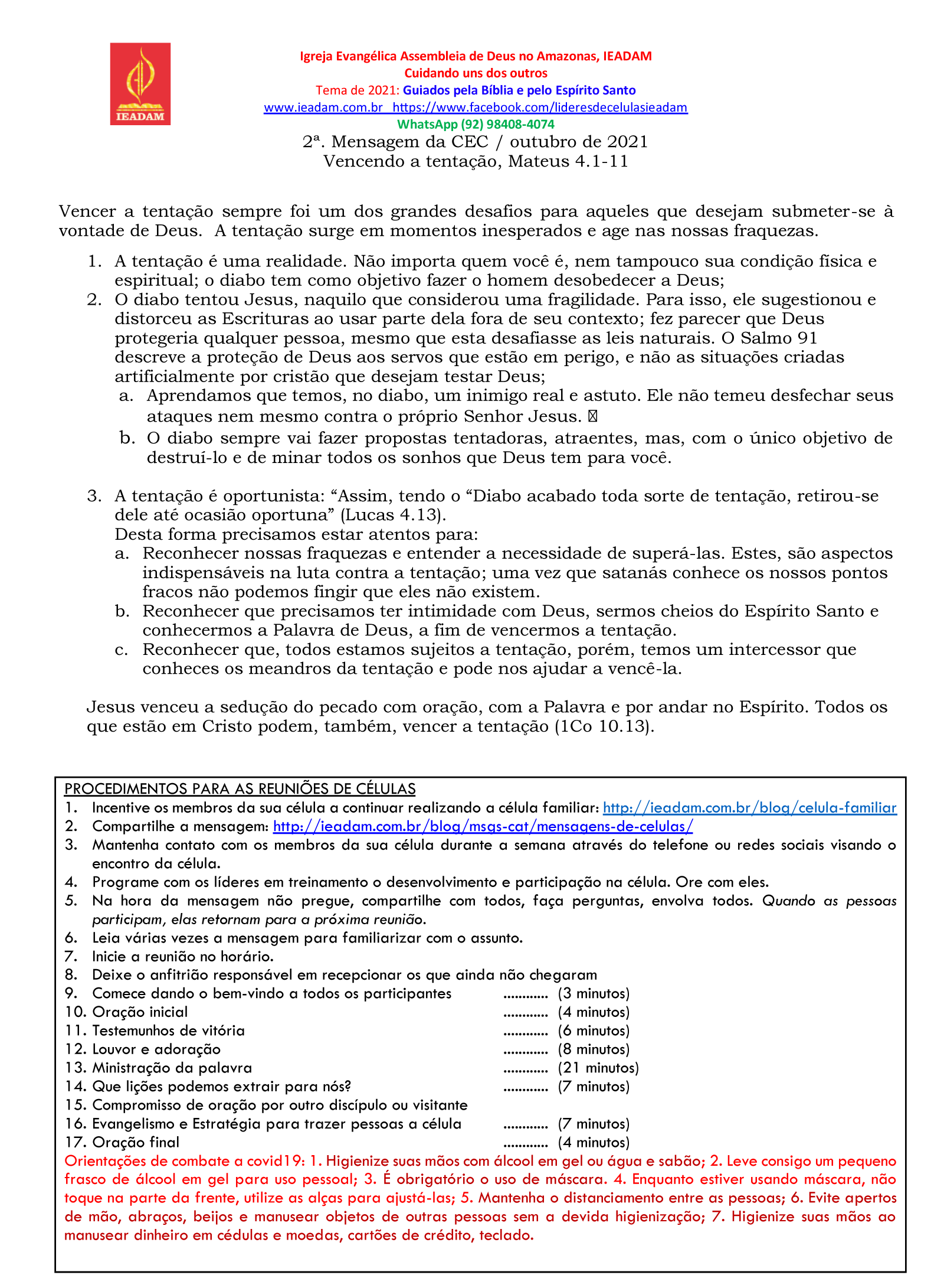 b. Reconhecer que precisamos ter intimidade com Deus, sermos cheios do Espírito Santo e conhecermos a Palavra de Deus, a fim de vencermos a tentação.