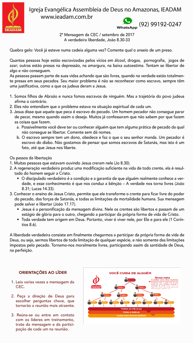 - Conhecer o ensino de Jesus Cristo, permite que ele transforme o crente para ficar livre do poder do pecado, das forças de Satanás, e todas as limitações da mortalidade humana. Sua mensagem pode salvar e libertar (Jo 17.17).