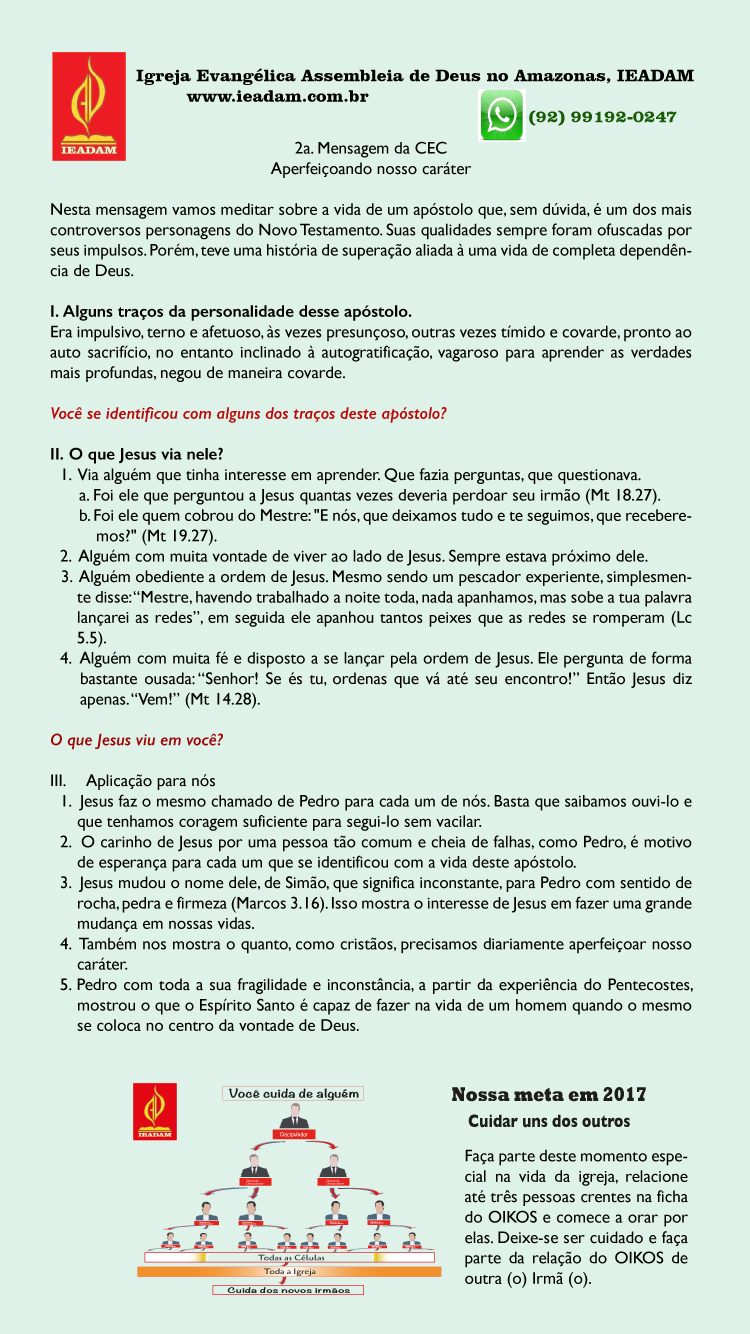 2a. Mensagem da CEC/Fev/2017 Aperfeiçoando nosso caráter