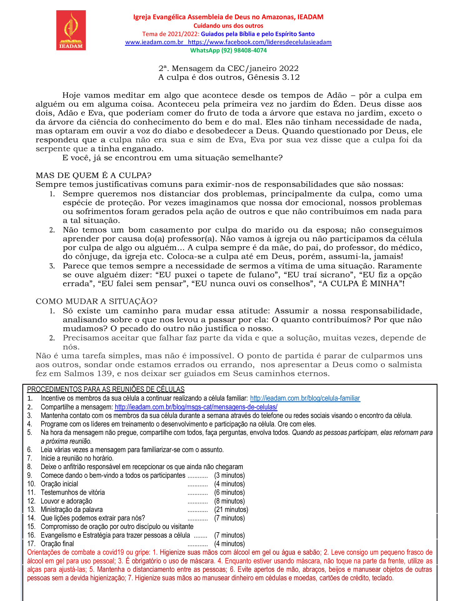 - Incentive os membros da sua célula a continuar realizando a célula familiar: http://ieadam.com.br/blog/celula-familiar