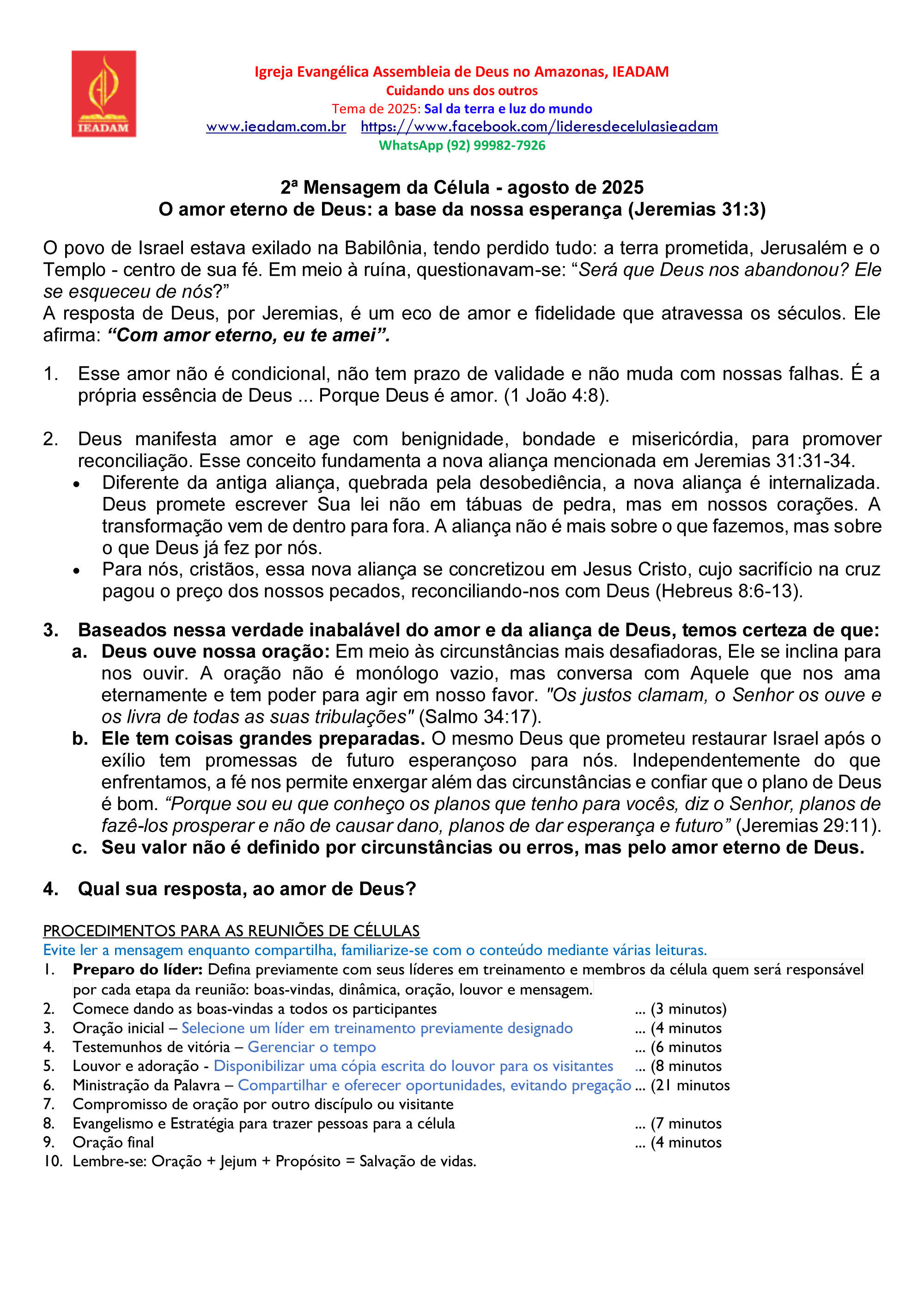 - Lembre-se: Oração + Jejum + Propósito = Salvação de vidas.