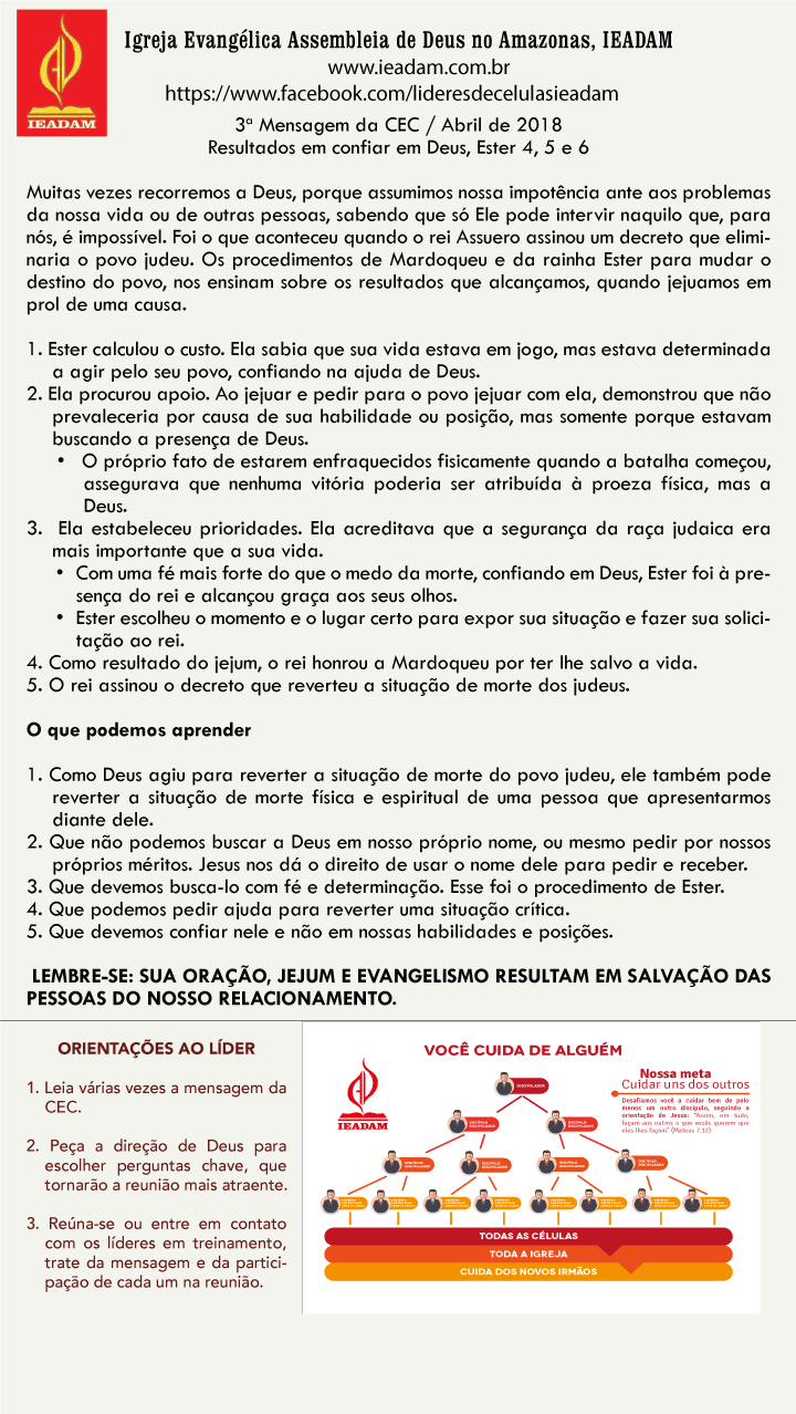 - Que devemos busca-lo com fé e determinação. Esse foi o procedimento de Ester.