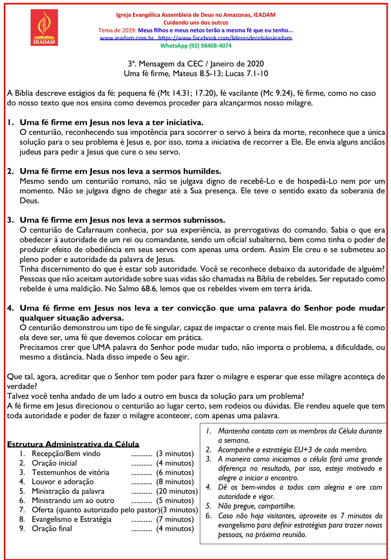 4. Uma fé firme em Jesus nos leva a ter convicção que uma palavra do Senhor pode mudar qualquer situação adversa.