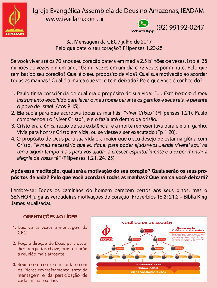 3ª Mensagem da CEC / julho de 2017 Pelo que bate o seu coração? Filipenses 1.20-25