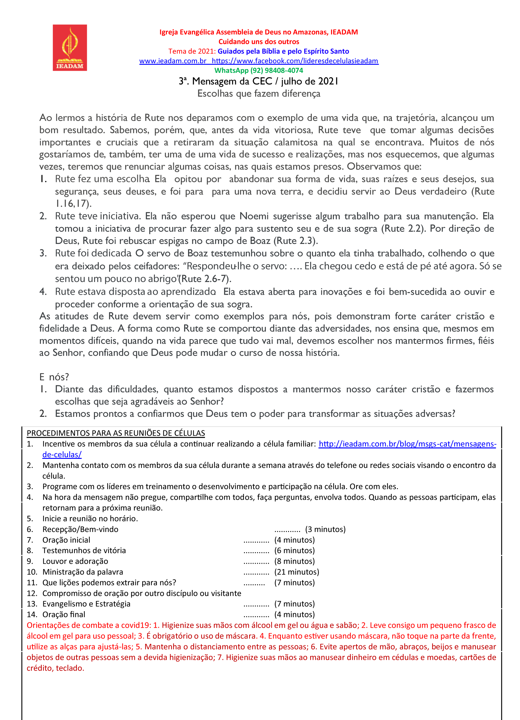 3ª. Mensagem da CEC / julho de 2021 Escolhas que fazem diferença