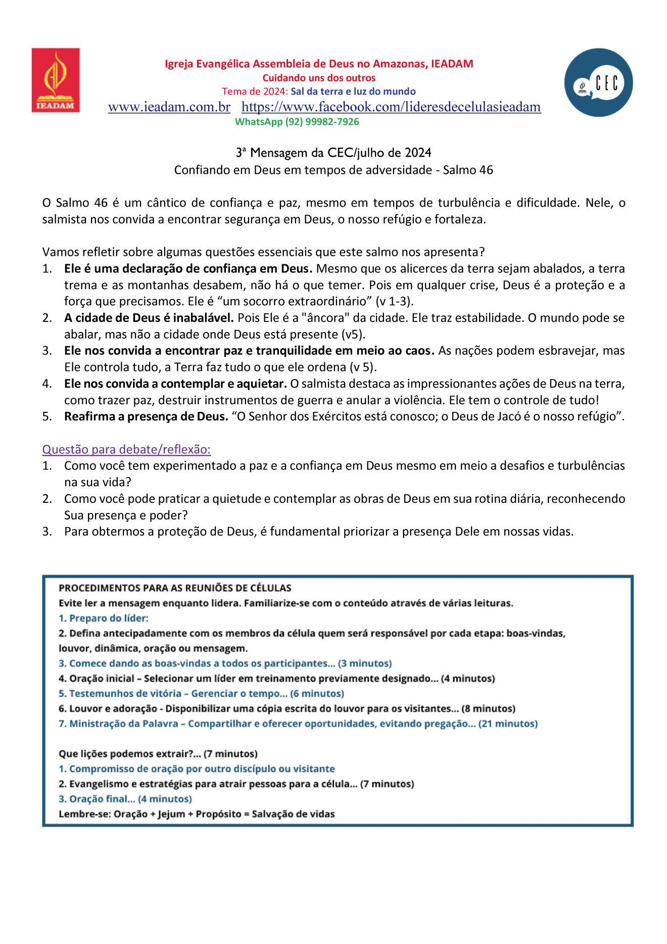 1. Ele é uma declaração de confiança em Deus. Mesmo que os alicerces da terra sejam abalados, a terra trema e as montanhas desabem, não há o que temer. Pois em qualquer crise, Deus é a proteção e a força que precisamos. Ele é “um socorro extraordinário” (v 1-3).