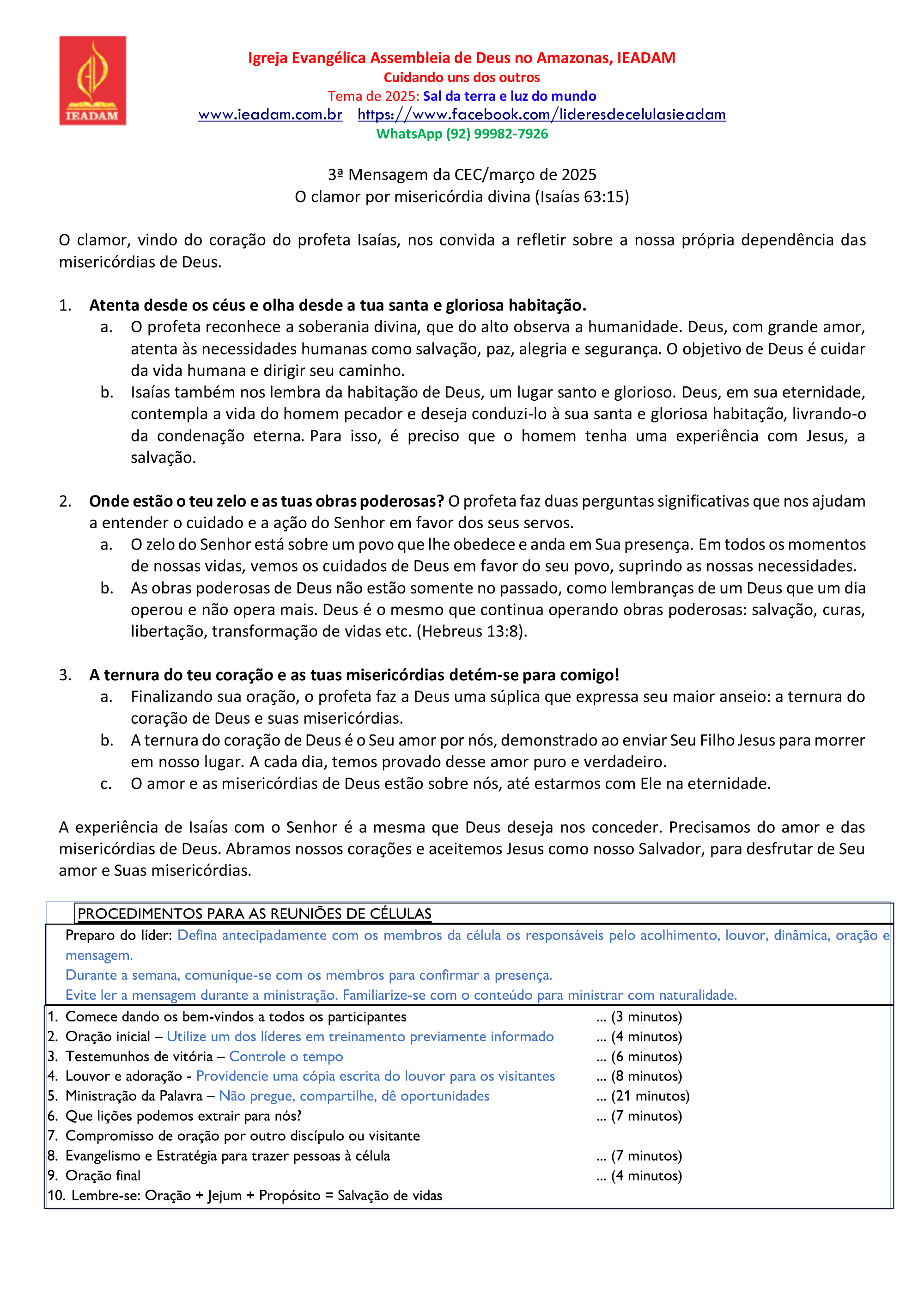 - O zelo do Senhor está sobre um povo que lhe obedece e anda em Sua presença. Em todos os momentos de nossas vidas, vemos os cuidados de Deus em favor do seu povo, suprindo as nossas necessidades.