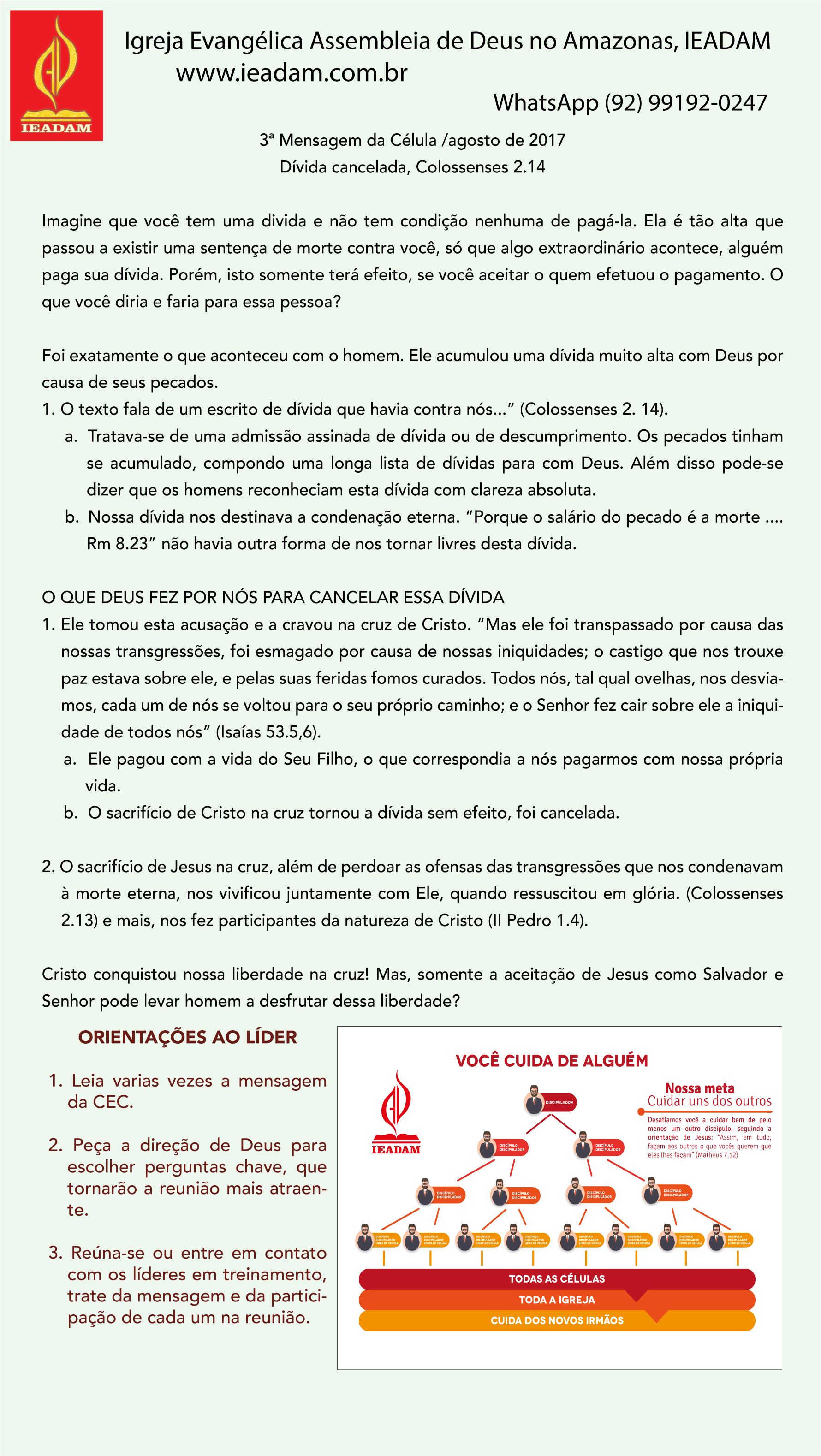 1. O texto fala de um escrito de dívida que havia contra nós…” (Colossenses 2. 14).