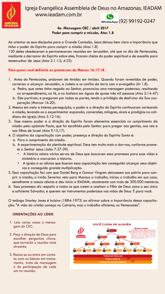 4a. Mensagem CEC / abril 2017 Poder para cumprir a missão, Atos 1.8