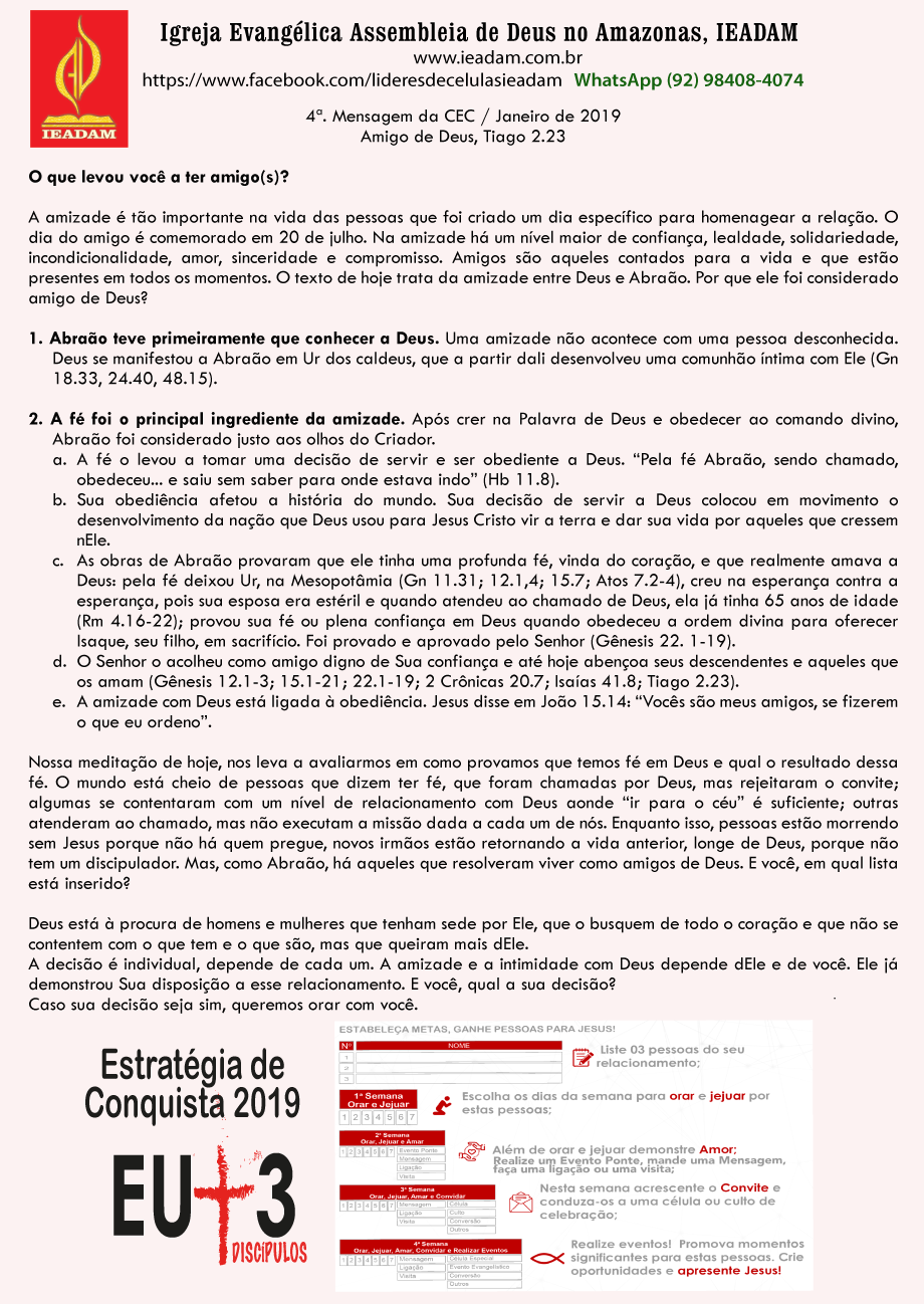 e. A amizade com Deus está ligada à obediência. Jesus disse em João 15.14: “Vocês são meus amigos, se fizerem o que eu ordeno”.
