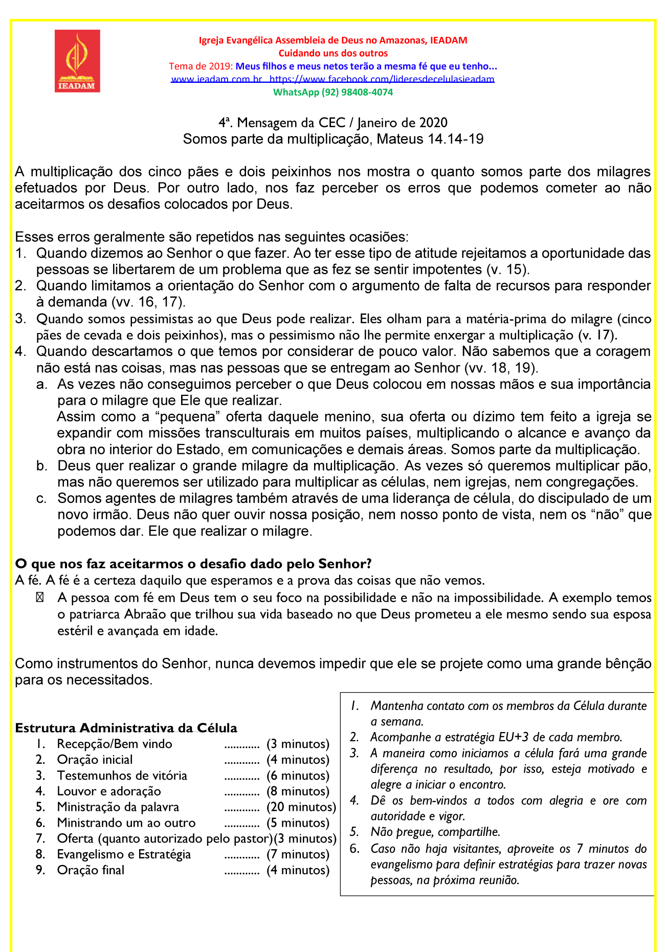 b. Deus quer realizar o grande milagre da multiplicação. As vezes só queremos multiplicar pão, mas não queremos ser utilizado para multiplicar as células, nem igrejas, nem congregações.