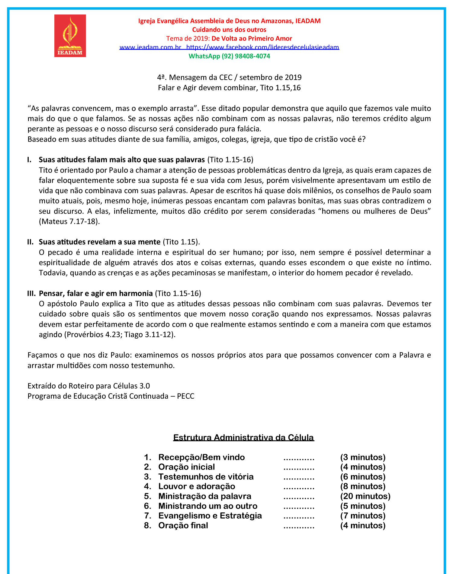 A 1° mensagem da CEC para o mês de outubro será postada HOJE?