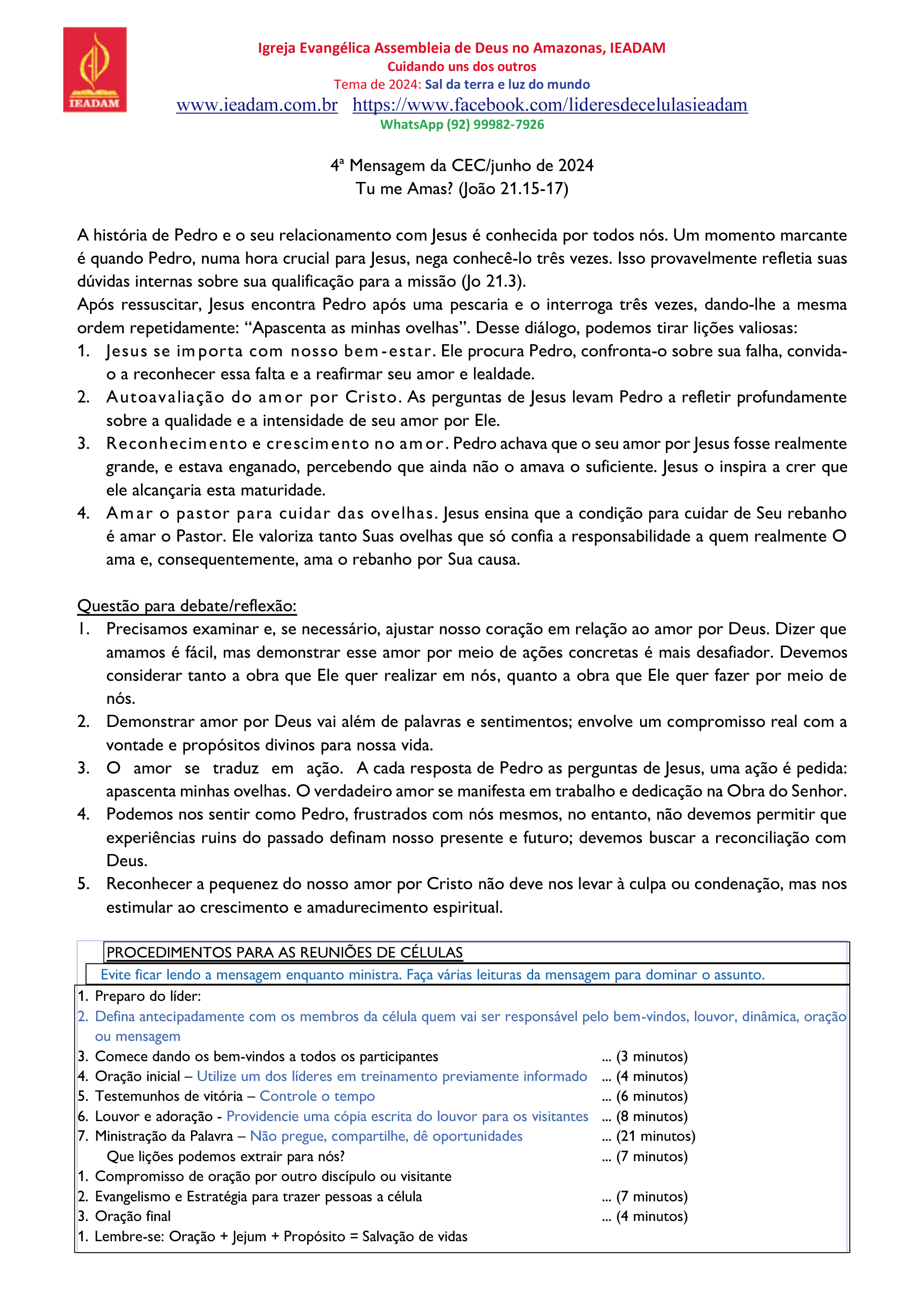 3. O amor se traduz em ação. A cada resposta de Pedro as perguntas de Jesus, uma ação é pedida: apascenta minhas ovelhas. O verdadeiro amor se manifesta em trabalho e dedicação na Obra do Senhor.