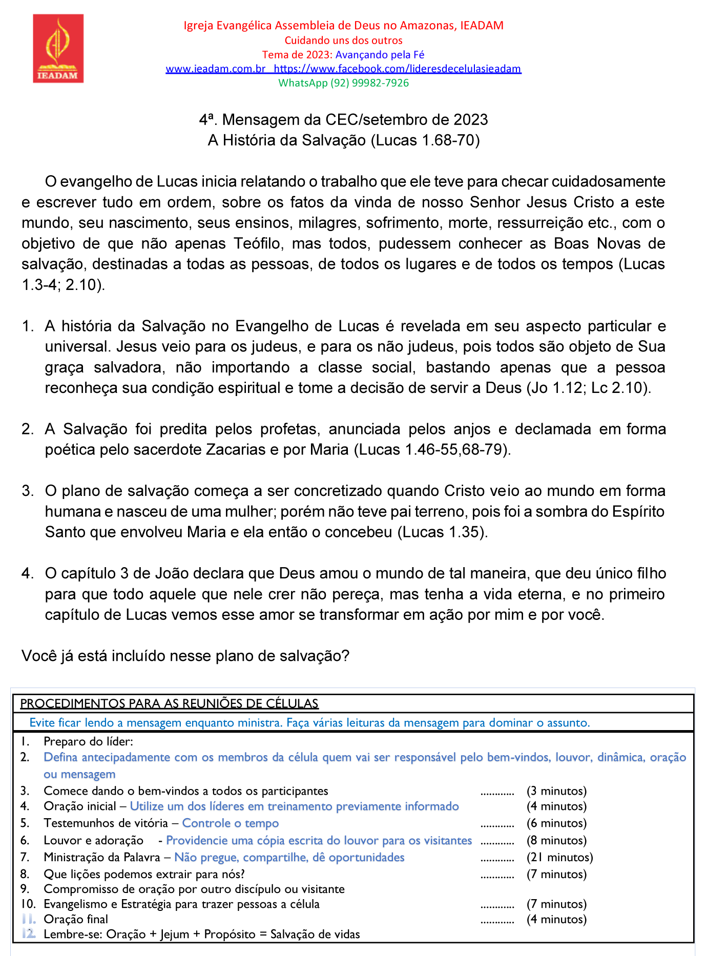 10. Evangelismo e Estratégia para trazer pessoas a célula ………… (7 minutos)
