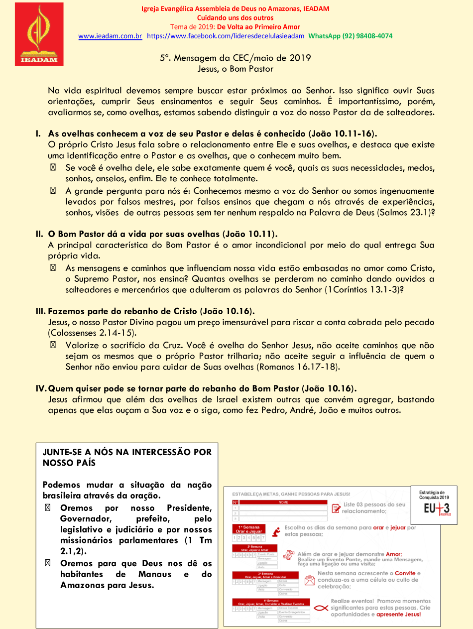 I. As ovelhas conhecem a voz de seu Pastor e delas é conhecido (João 10.11-16).