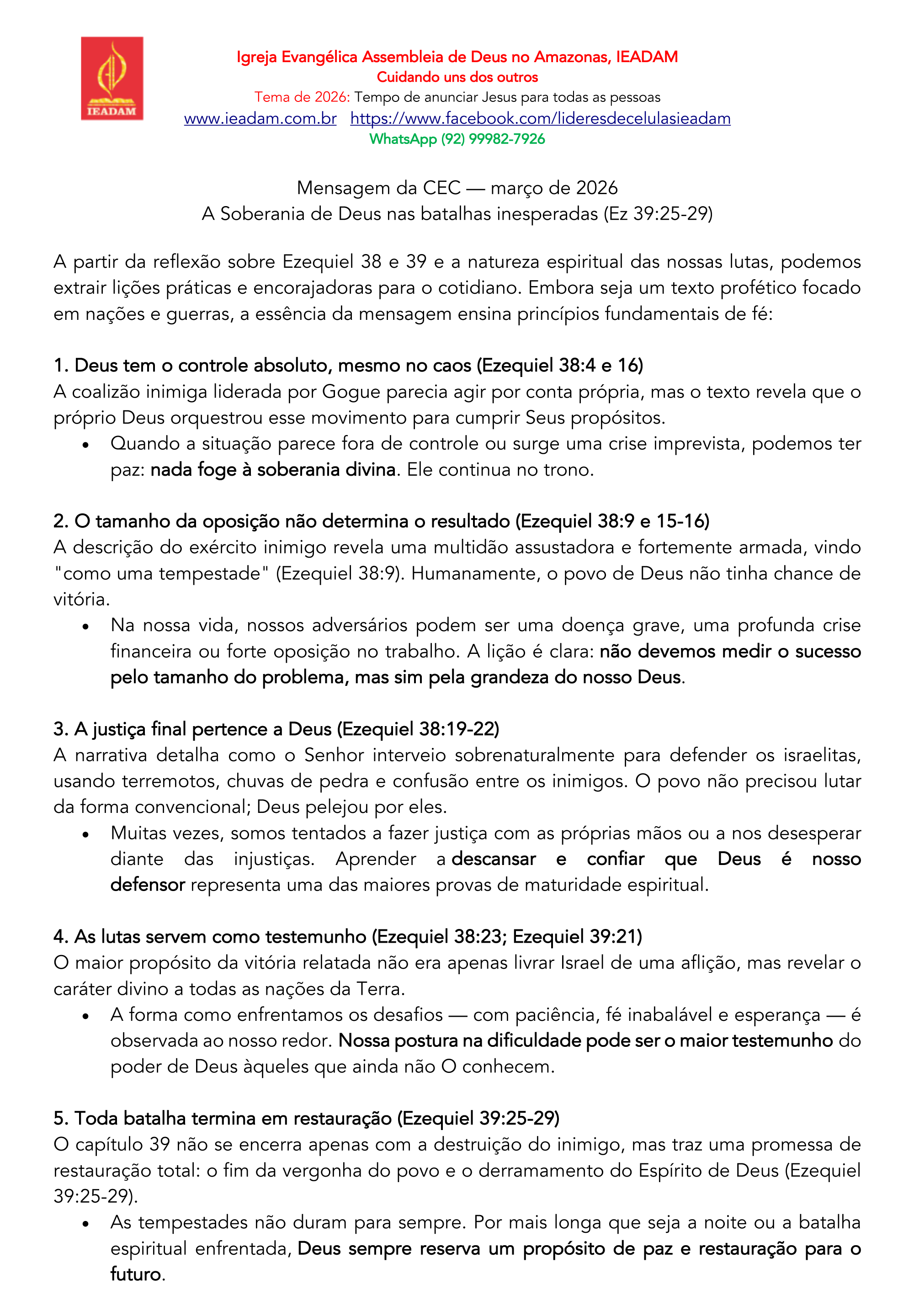 - Toda batalha termina em restauração (Ezequiel 39:25-29)