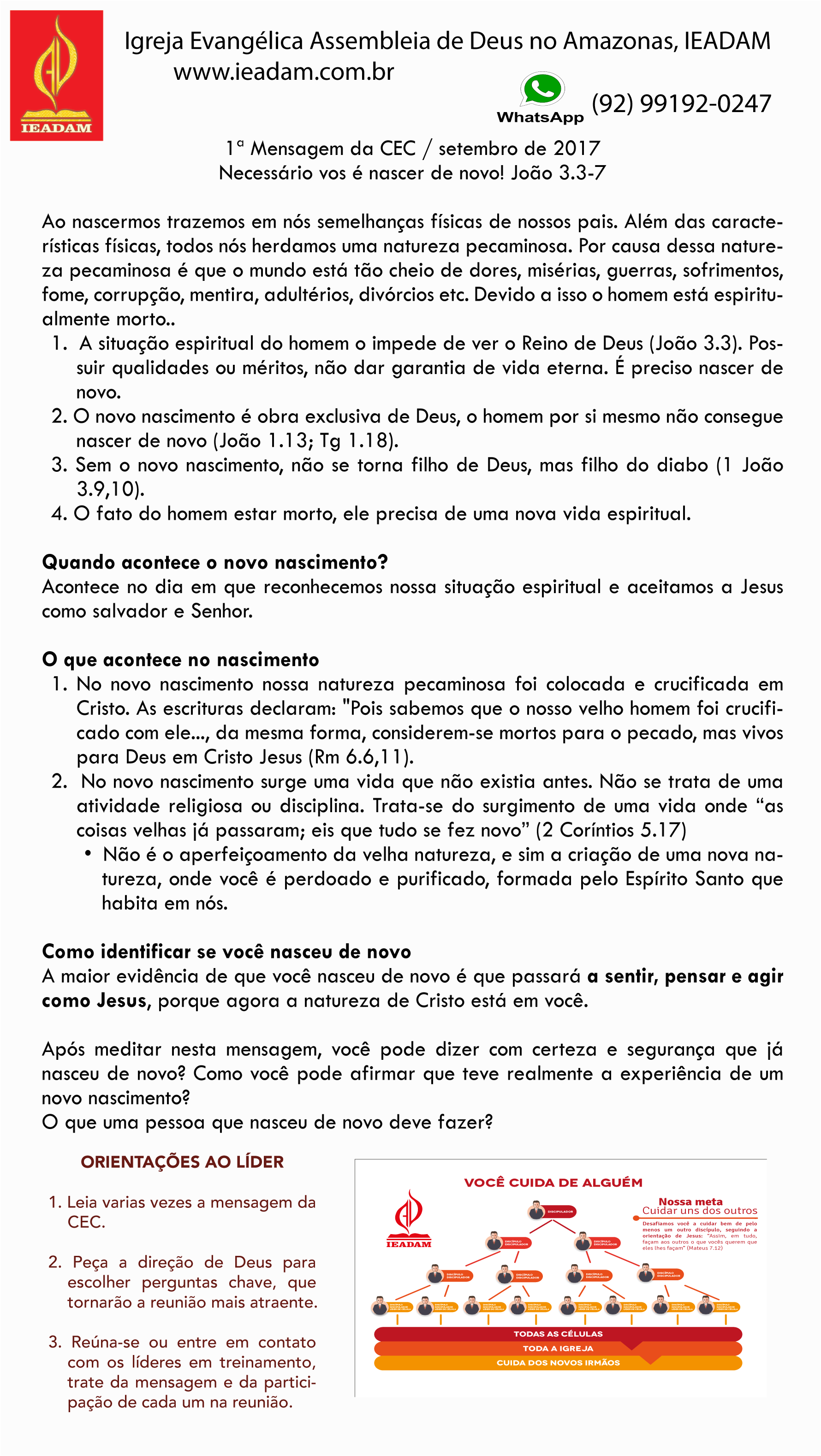 1. A situação espiritual do homem o impede de ver o Reino de Deus (João 3.3). Possuir qualidades ou méritos, não dar garantia de vida eterna. É preciso nascer de novo.